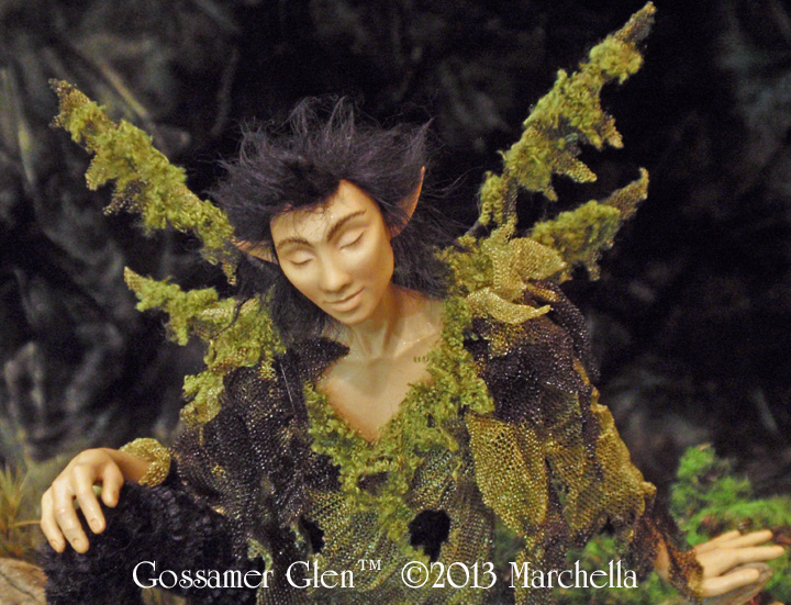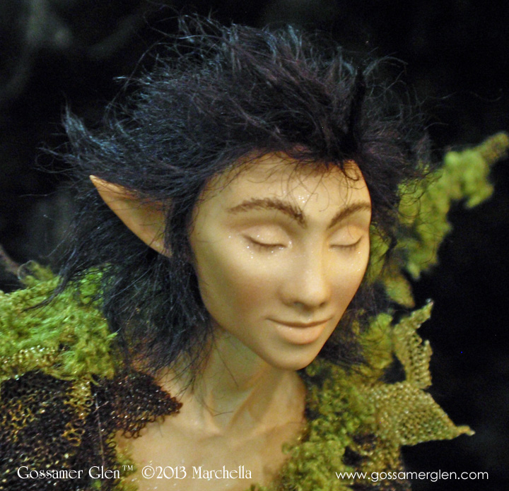 GREATLY enlarged to show detail. A U.S. dime would cover entire face. Faerie measures 4"(10 cm) in sitting position.